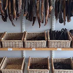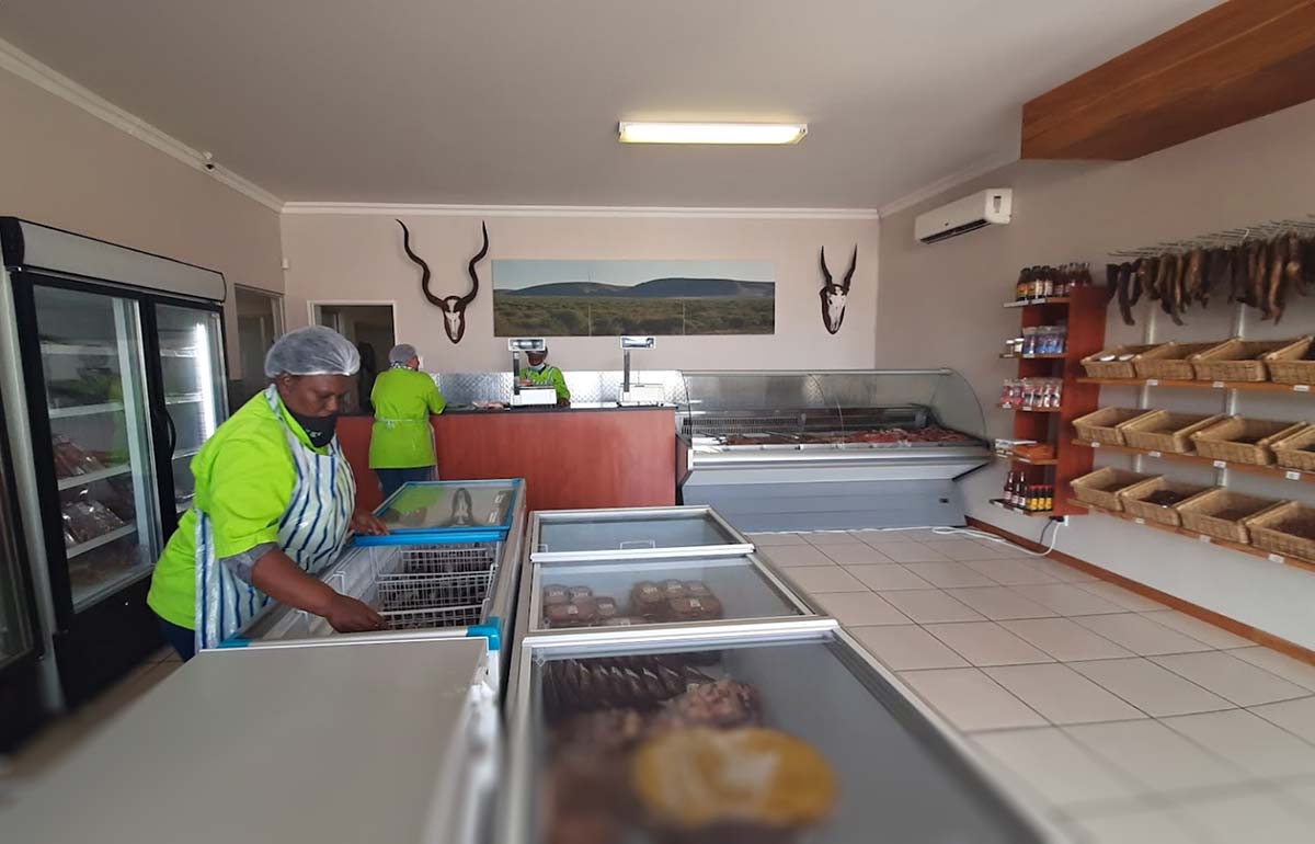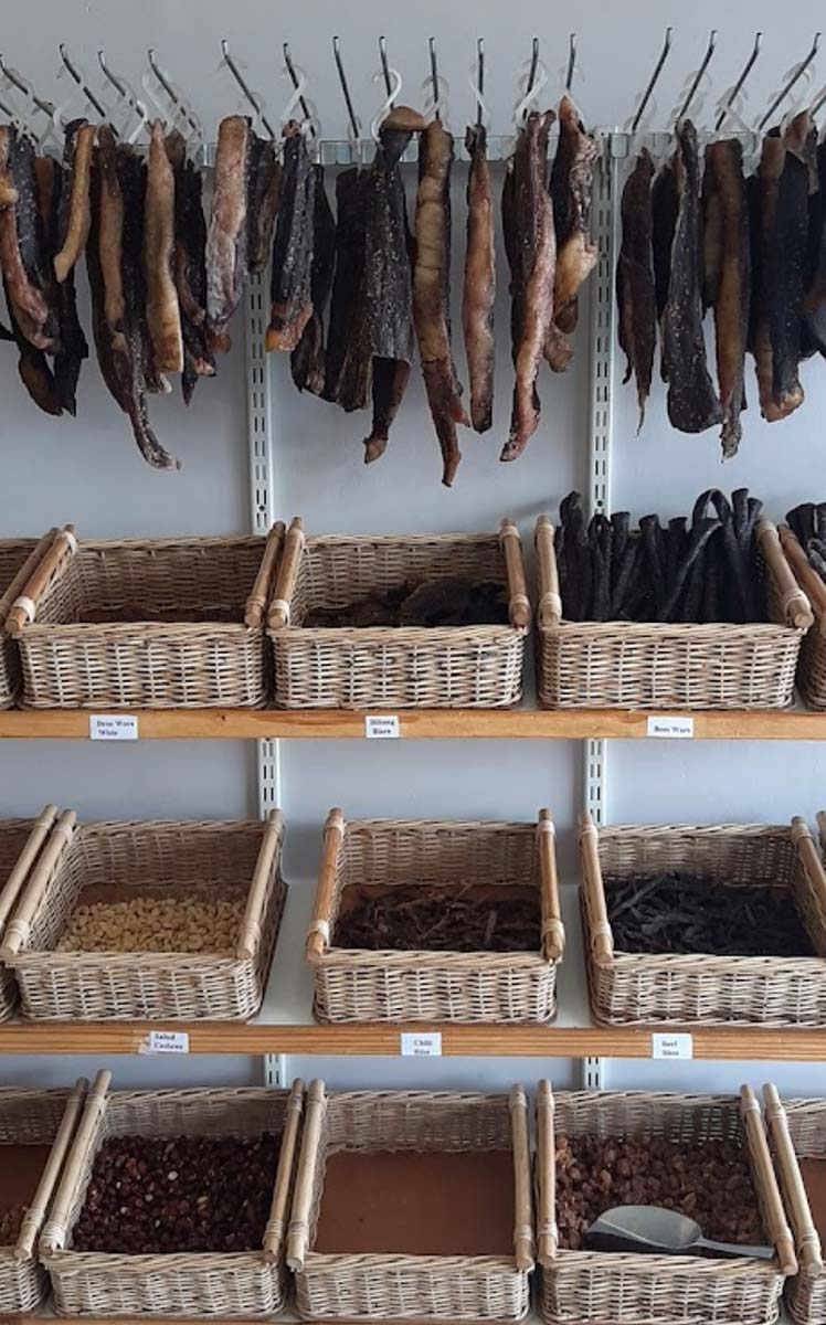 Ons bied ook slaghuisdienste aan, soos pasgemaakte snitte, ontbening en marinering. Dan is daar natuurlik ons gewilde Dorperland Biltong produkte, asook verskeie souse, speserye en ander bykomstighede. Kom loer gerus in!