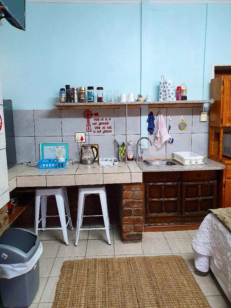Ten volle toegerus vir selfsorg met o.a. lugverkoeling, DSTV, Wi-fi, veilige parkering, asook solarkrag met beurtkrag vir ligte, TV en dakwaaier. Privaat braaigeriewe.
