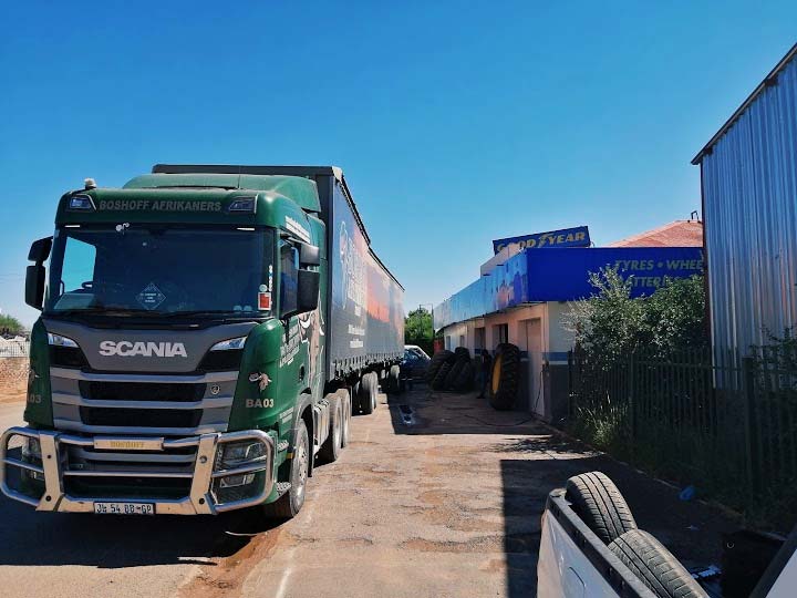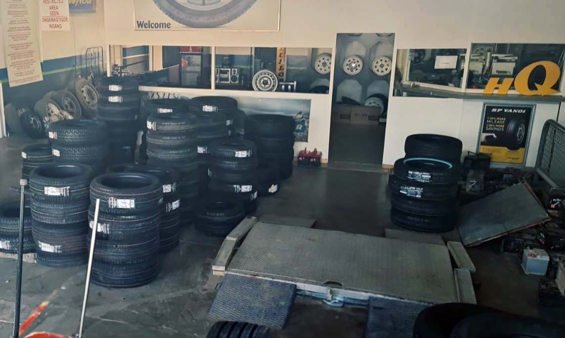 Dienste wat ons bied: Pas van Bande, Punksies, Wielbalansering, Installasies, Vulkanisering, Hersteleenhede - 24/7 oproepe oor bande wat onklaar raak.